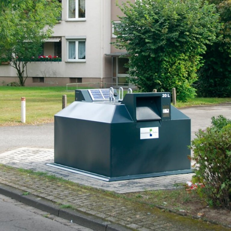 Zintegrowany panel słoneczny i akumulator zapewniają systemowi energię elektryczną. Kubatura 3,0 m3. Pojemniki dedykowane m.in. dla: Spółdzielni, miejsc rekreacji i odpoczynku, na parkingi (wersja z zamkiem lub ogólnodostępna).